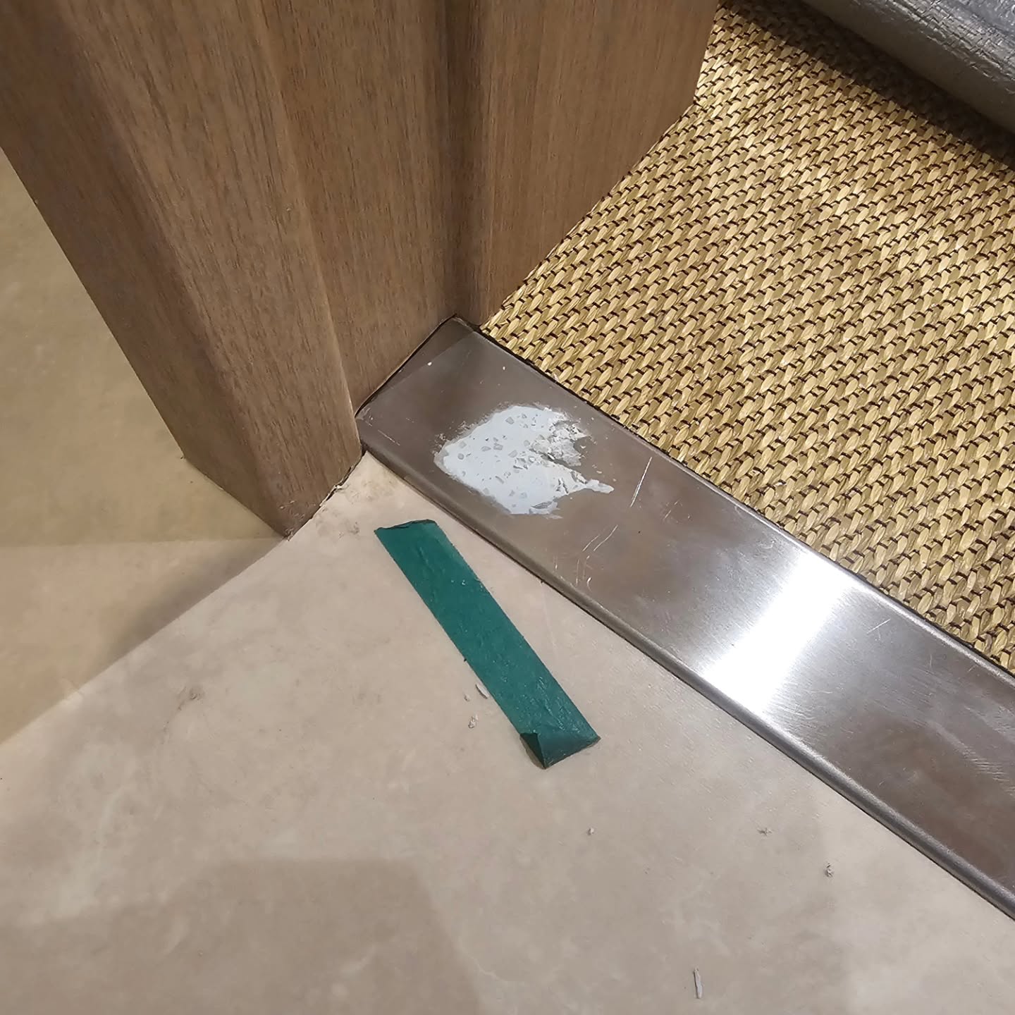 大阪府 門真市 ステンレス沓摺 パテ 除去 凹み補修