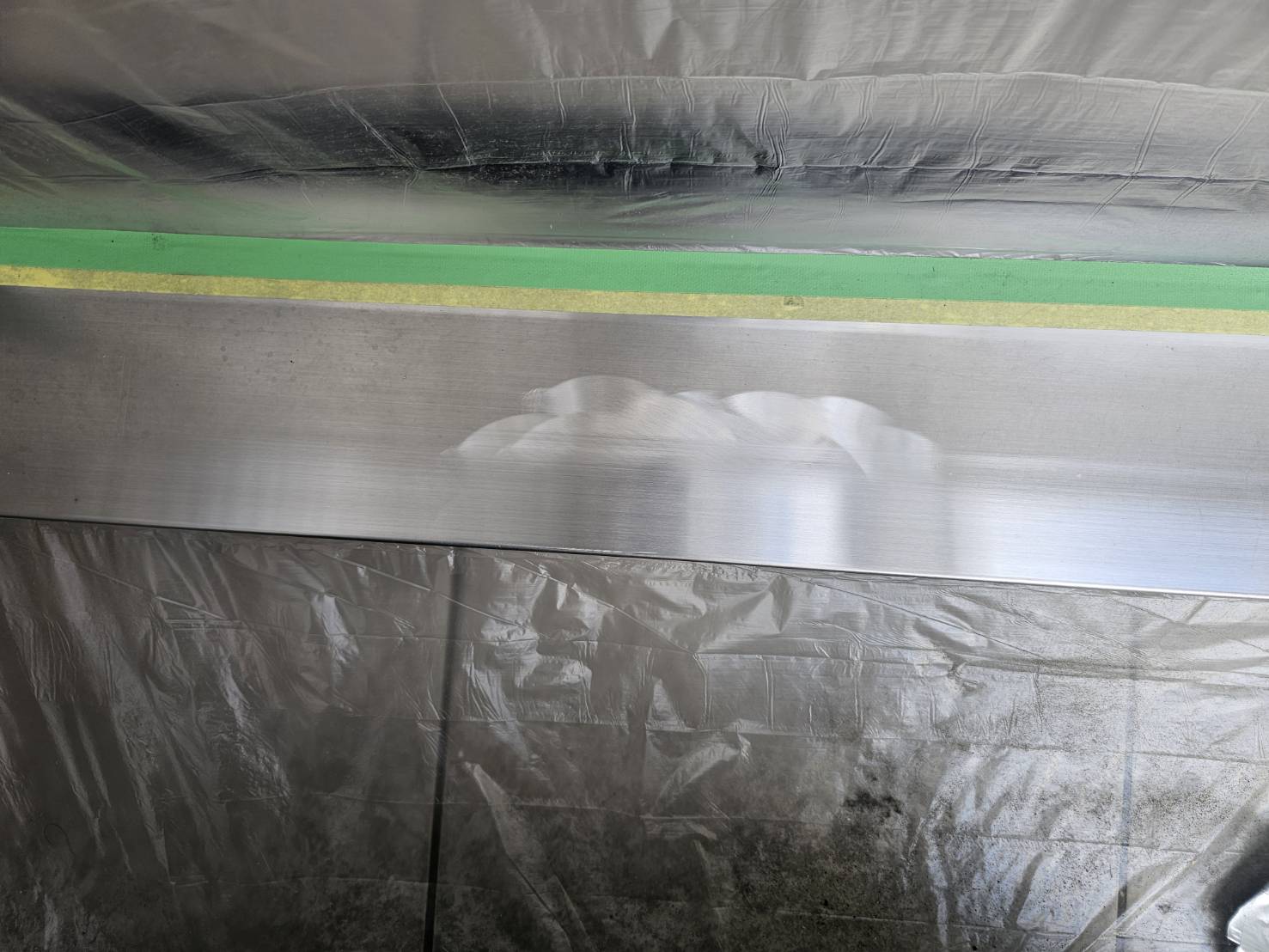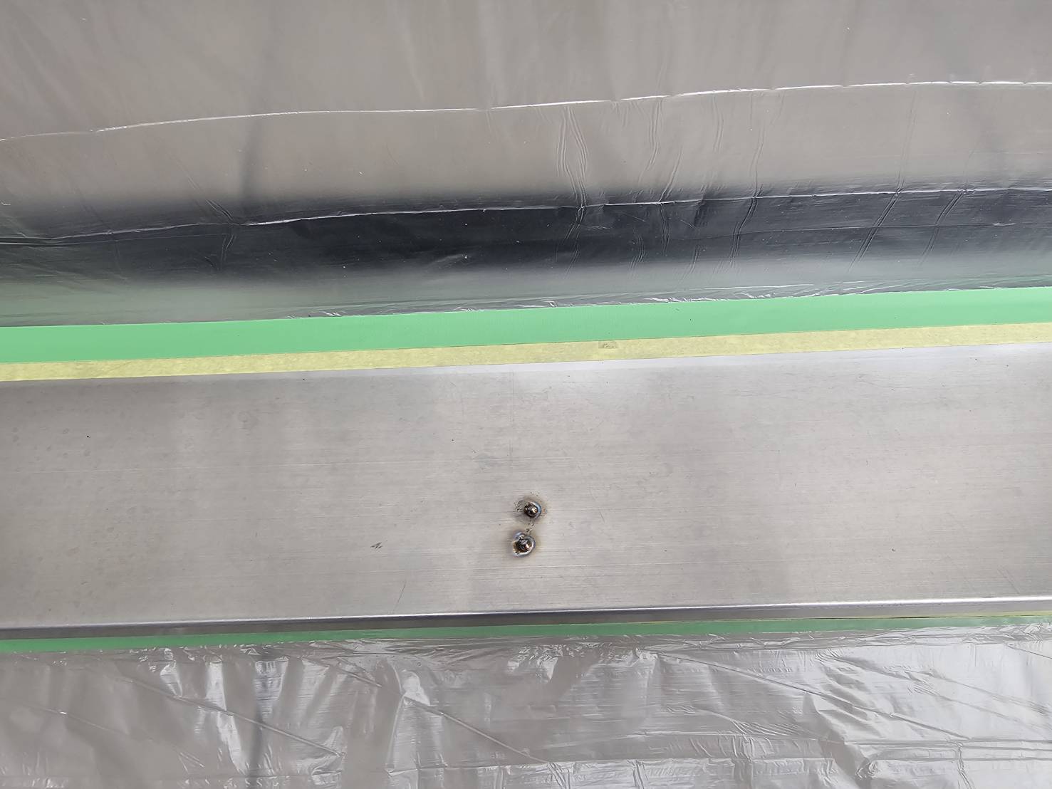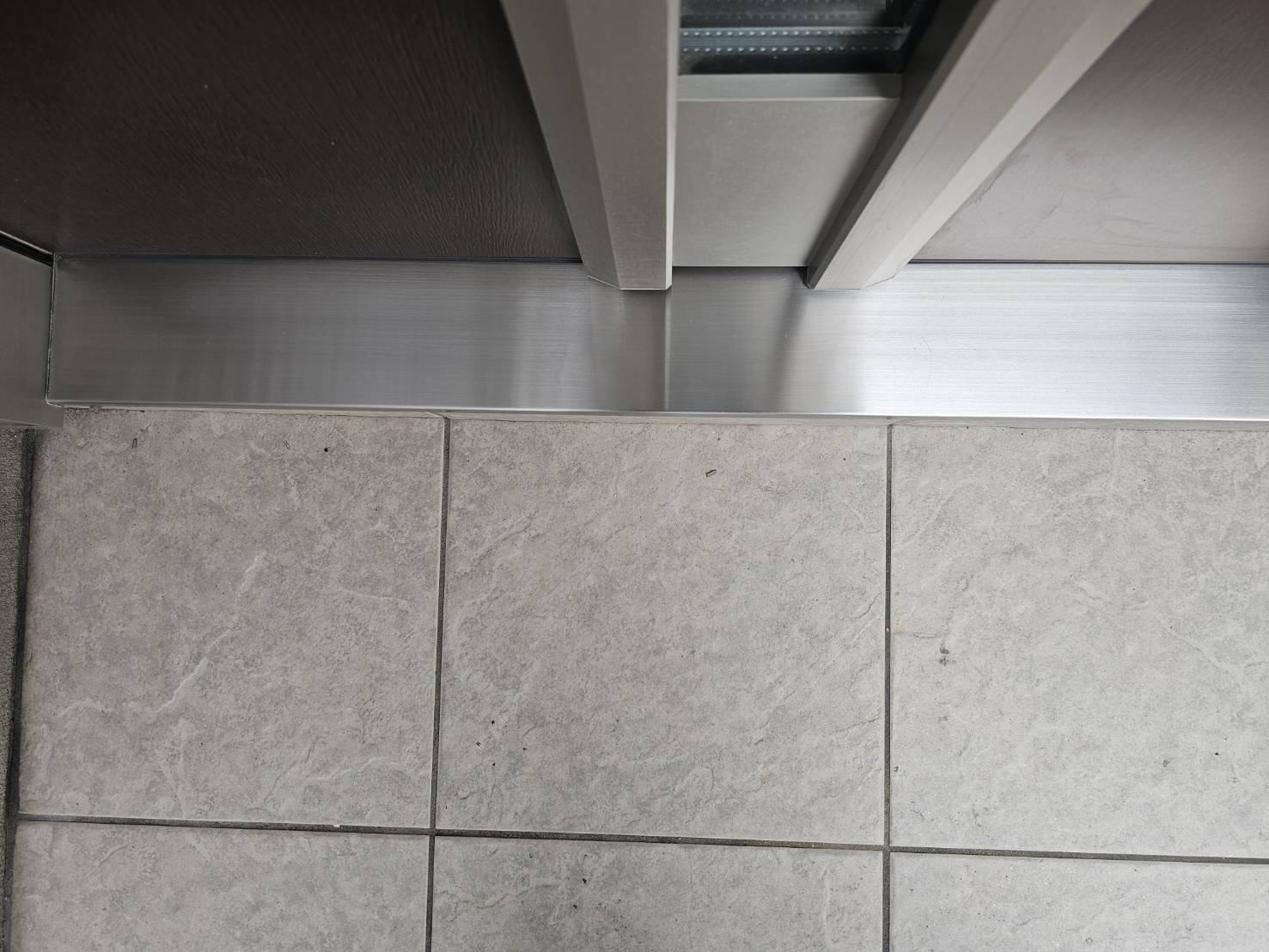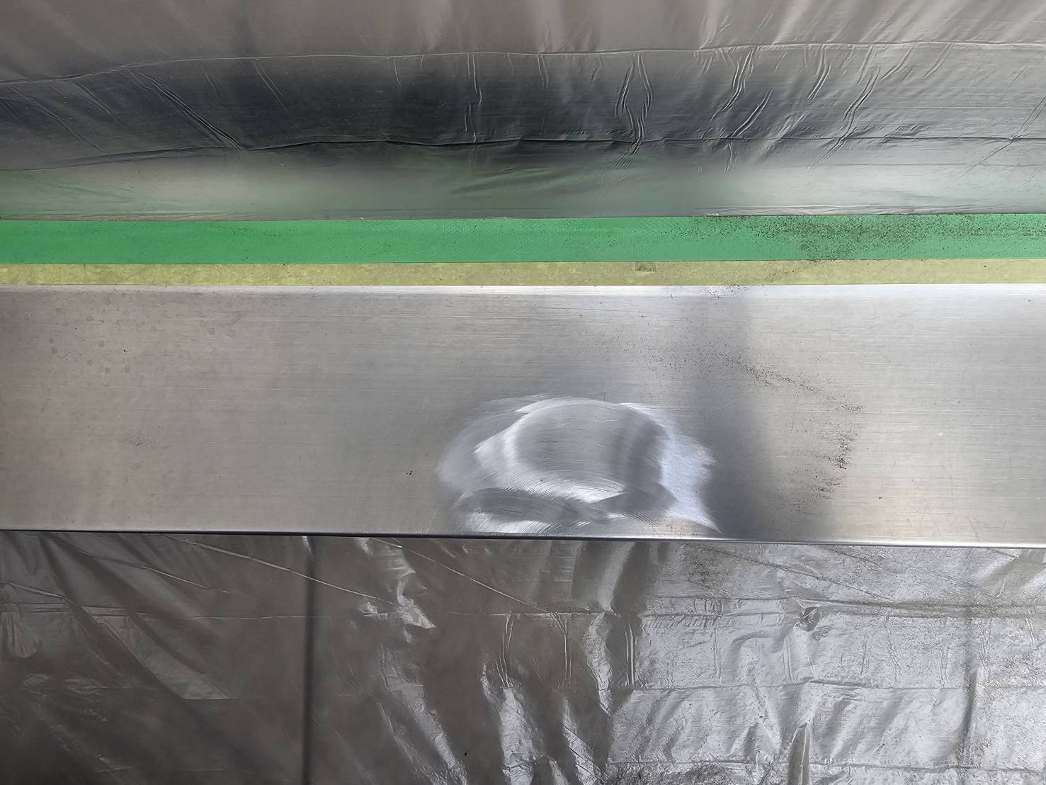 2026/02/24(火) 【大阪府大東市】一軒家 玄関 沓摺 凹み 補修 エリア 大阪府大東市 施工箇所 一軒家 玄関 沓摺 状態 足場屋さんが足場を落として沓摺がへこんでいる 施工方法 凹みを溶接しリフトアップ、研磨後ヘアラインの再生 業務レポート No. 2604